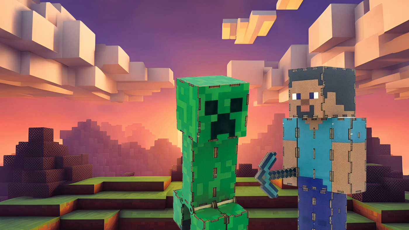 Snap together the wood pieces to form a full color, displayable statue every Minecrafter will love!